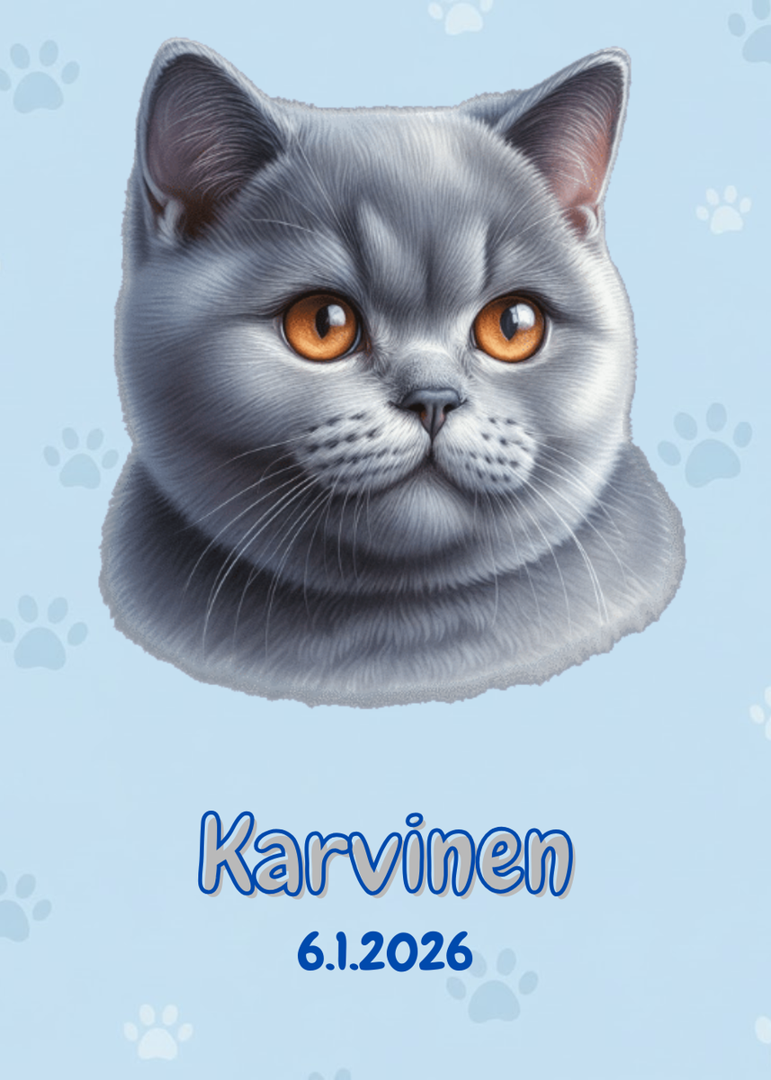 Tuo kotiisi lämpöä ja persoonallisuutta kauniilla, räätälöitävällä kissajulisteella. Tämä juliste on sydämellinen tapa kunnioittaa rakasta perheenjäsentä, oli kyseessä sitten pieni pentu tai jo edesmennyt ystävä. Voit valita julisteen taustaväriksi herkän vaaleanpunaisen tai rauhallisen sinisen.